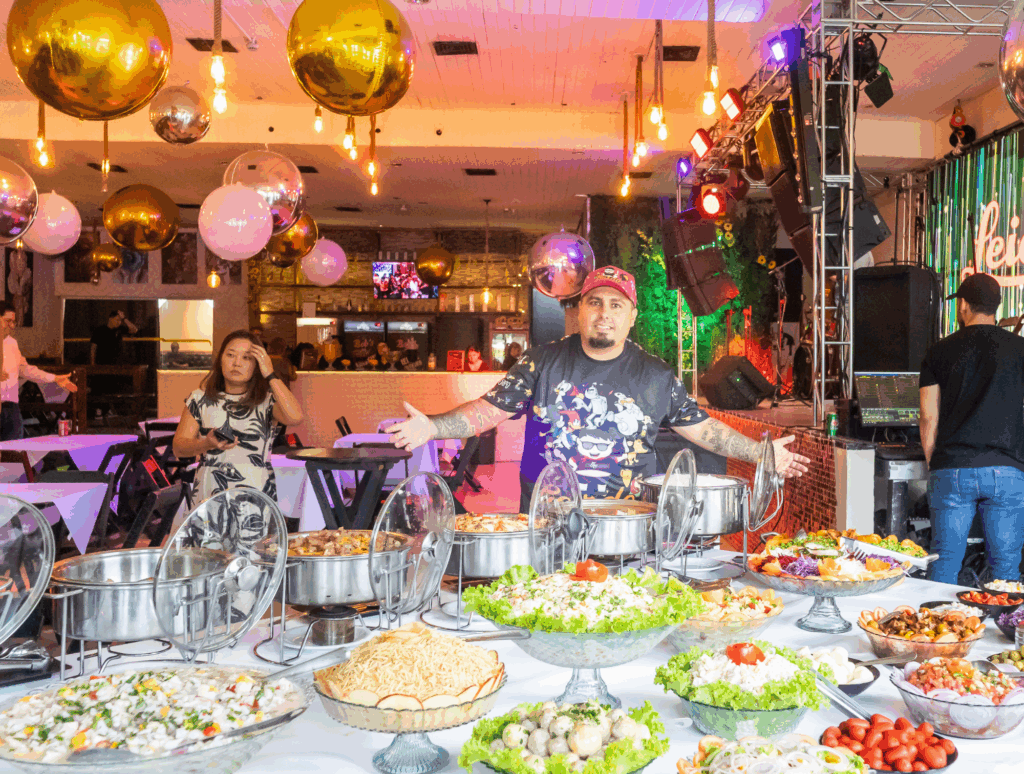 Celebre momentos especiais com um buffet de churrasco completo, ideal para reunir amigos e familiares com sabor e praticidade.